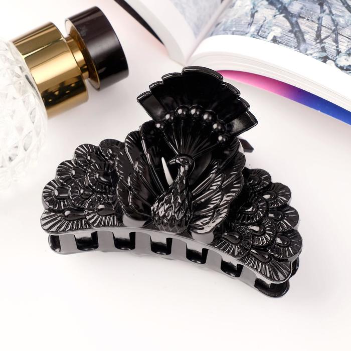 Крабик для волос «Классик», счастливый павлин, 8×5 см, чёрный