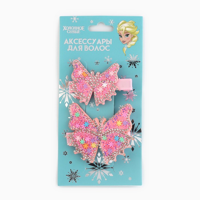Заколка для волос с блестками, 2 шт, 5.5 см, бабочки, Холодное сердце