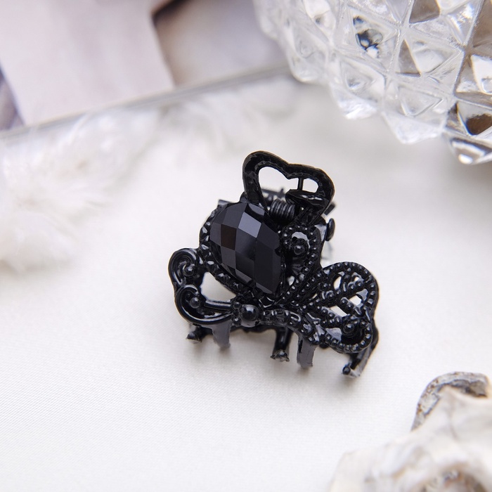 Крабик для волос «Чёрный ажур», цветок, 2.3 см