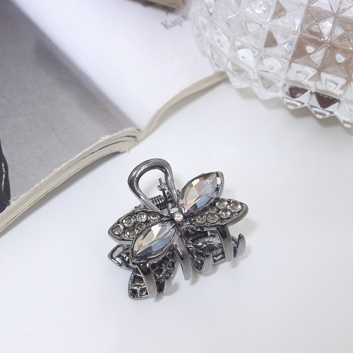 Крабик для волос «Чернёный», цветок, 4.8 см, серебро