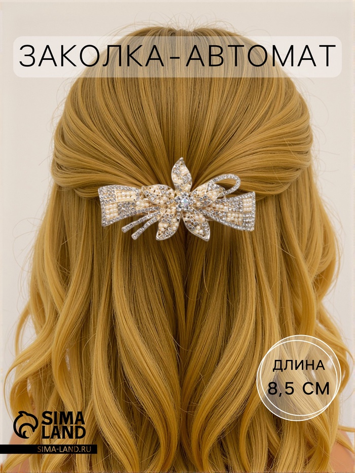 Заколка - автомат для волос «Диана», бант, 6.5 см, золото