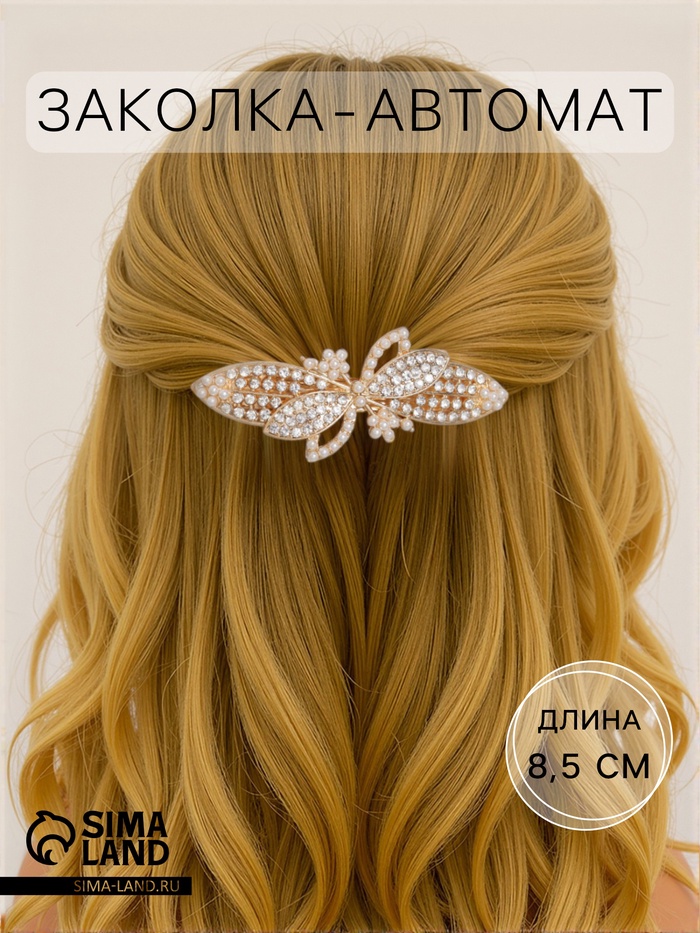 Заколка - автомат для волос «Айрис», бабочка, 9 см, золото