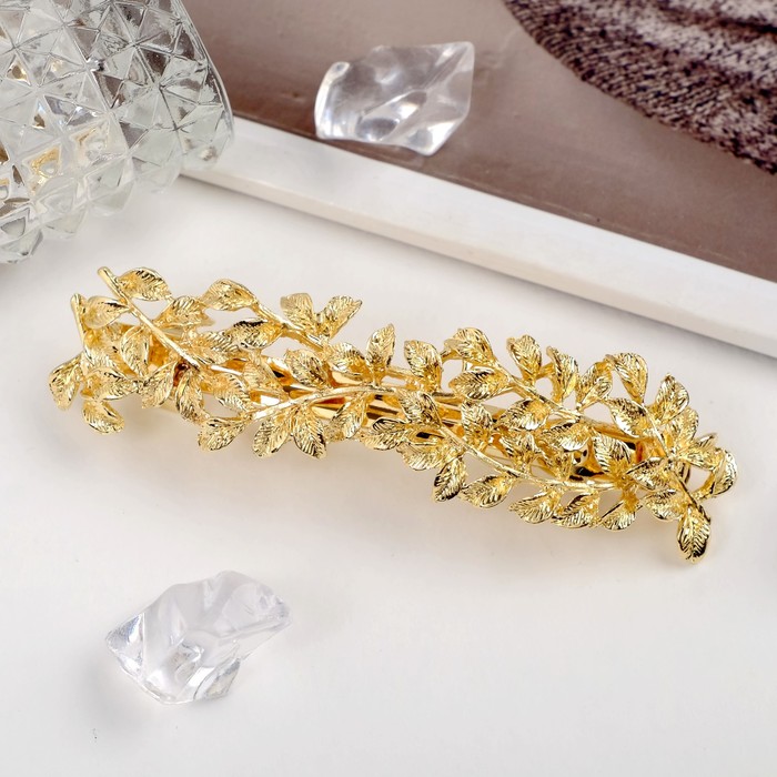 Заколка - автомат для волос «Престиж», листики, 8.5 см, золото