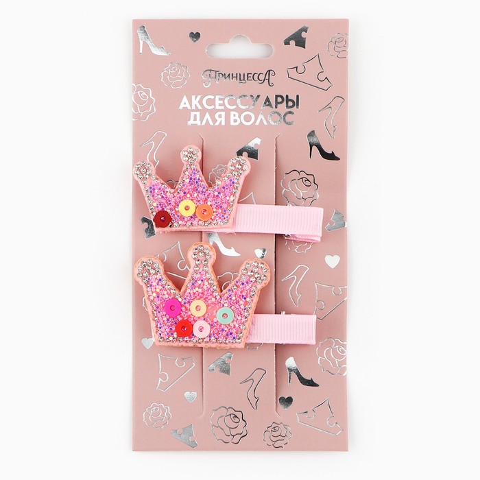 Заколка для волос «Корона» со стразами, 2 шт. 5.5 см, Принцессы