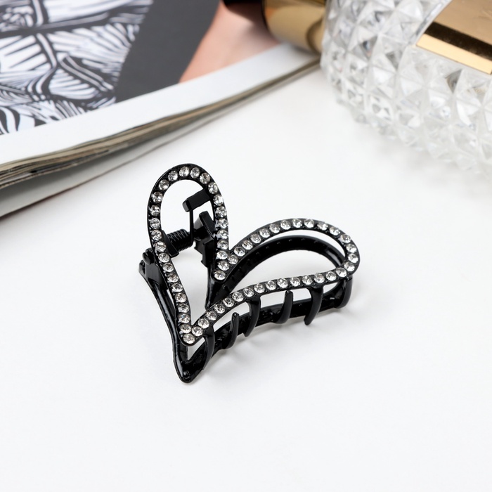 Крабик для волос «Джун», сердце, 4.5 см, чёрный