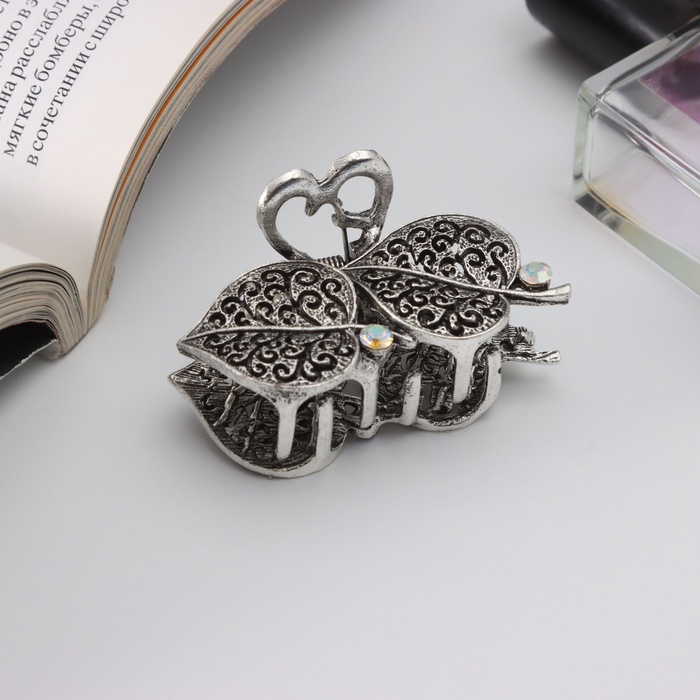 Крабик для волос «Лаура», листочки, 5.5 см, серебро