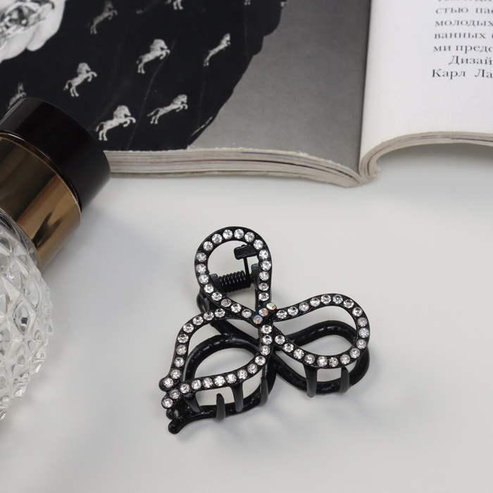 Крабик для волос «Джун», бант, 4.5 см, чёрный