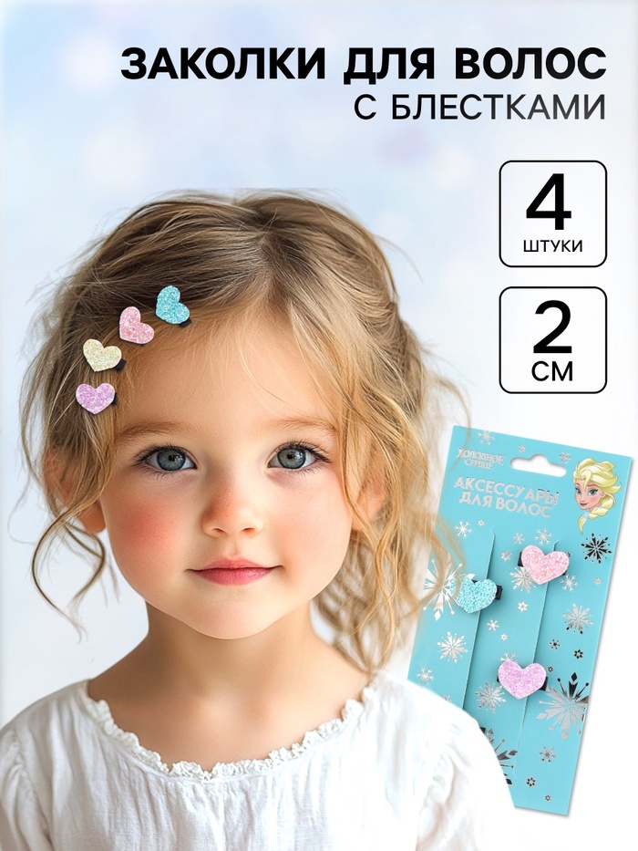 Заколки для волос, набор 4 шт., 2 см, «Холодное сердце»