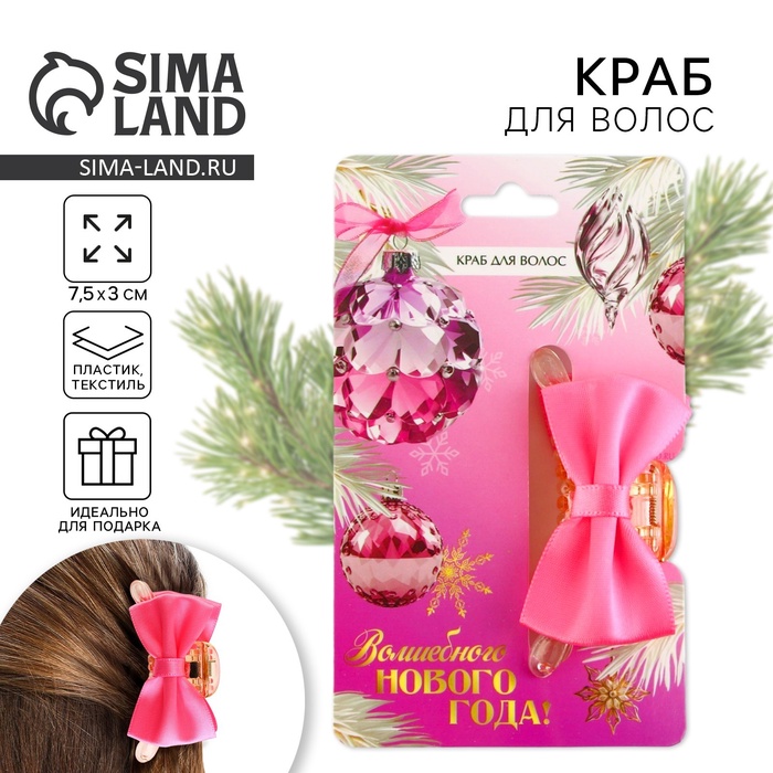 Краб для волос с бантом «Волшебного года», 7,5 х 3 см