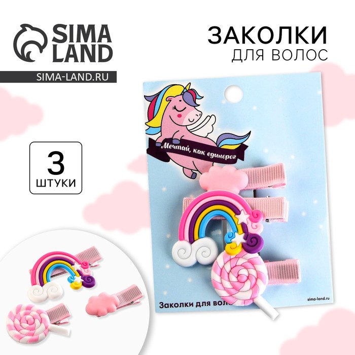 Заколки для волос детские«Мечтай как единорог», 3 шт, 7,5 х 10 см