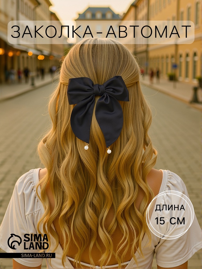 Заколка - автомат для волос «Джулия», двойной бант, 18×15 см, чёрная