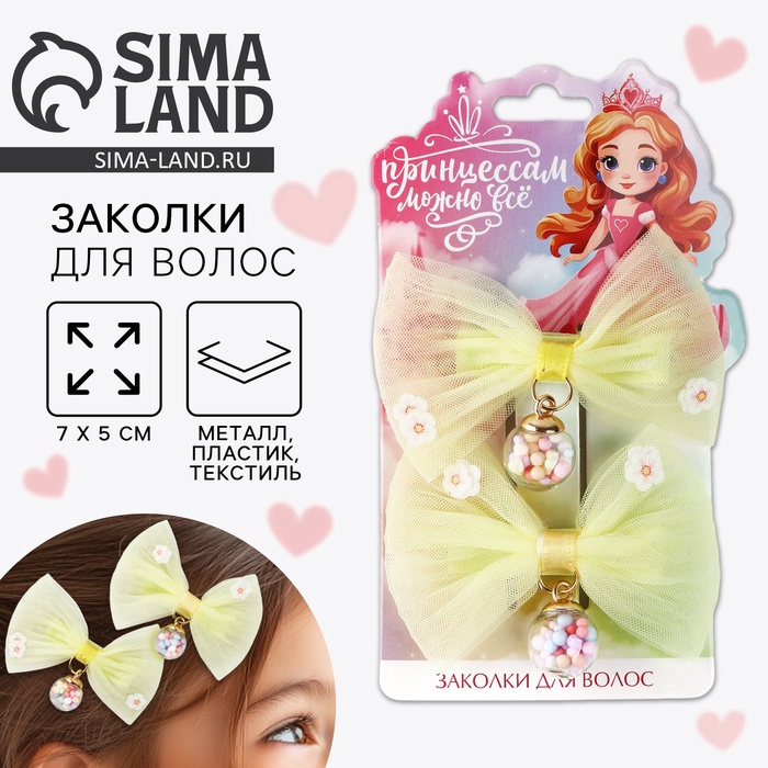 Заколка для волос с бантом «Принцессам можно все», 7 х 5 см