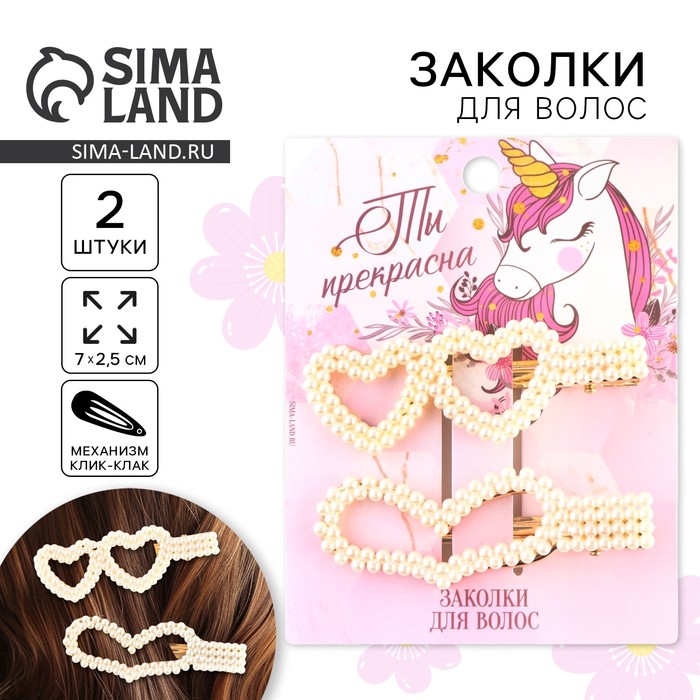 Заколки для волос «Ты прекрасна», 2 шт, 7 х 2,5 см