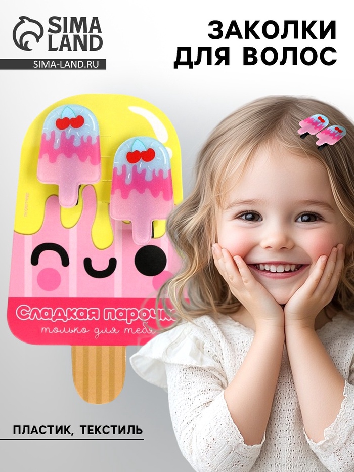 Заколки для волос детские «Сладкая парочка», 2 шт., 3×1.5 см