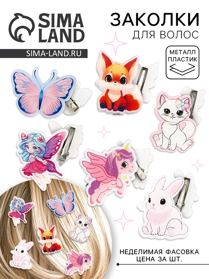 Заколки для воло «Микс», 5 х 1,2 х 0,5 см