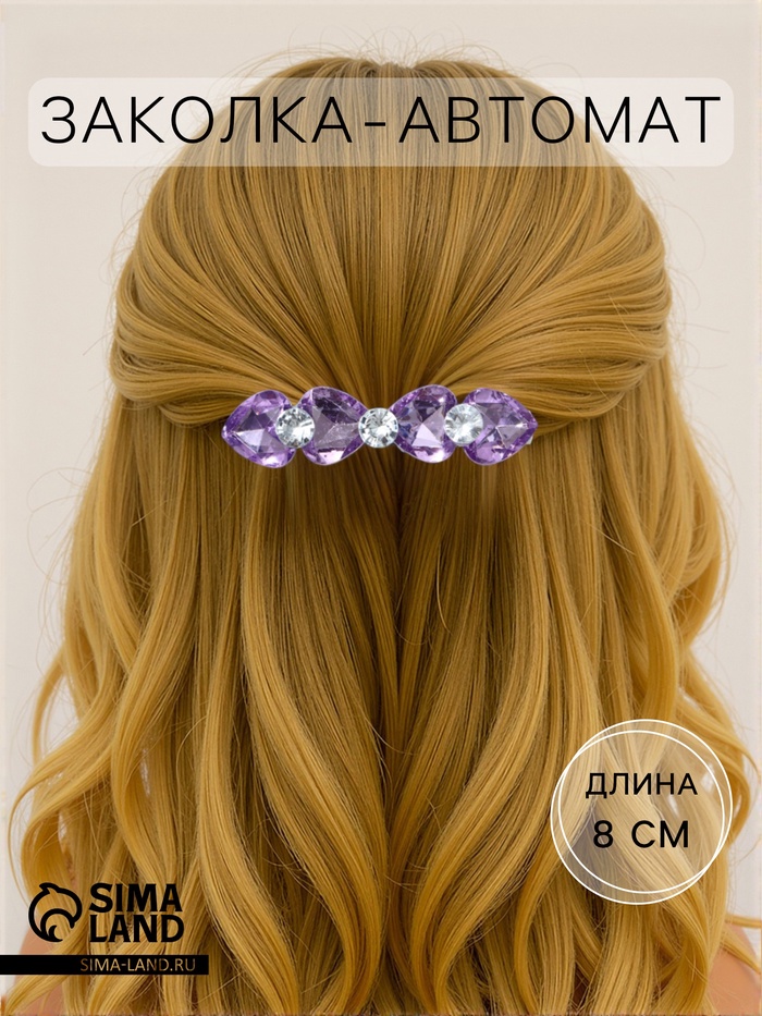Заколка - автомат для волос «Грани», сердечки, 8 см, МИКС
