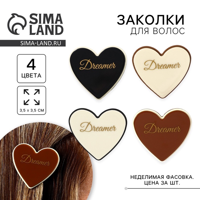 Заколка для волос акриловая Dreamer, МИКС, 3.5×3.5 см