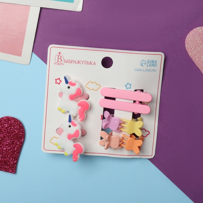 Набор для волос «Крошечка», 2 резинки, 2 зажима, 4 крабика, единорожка волшебный