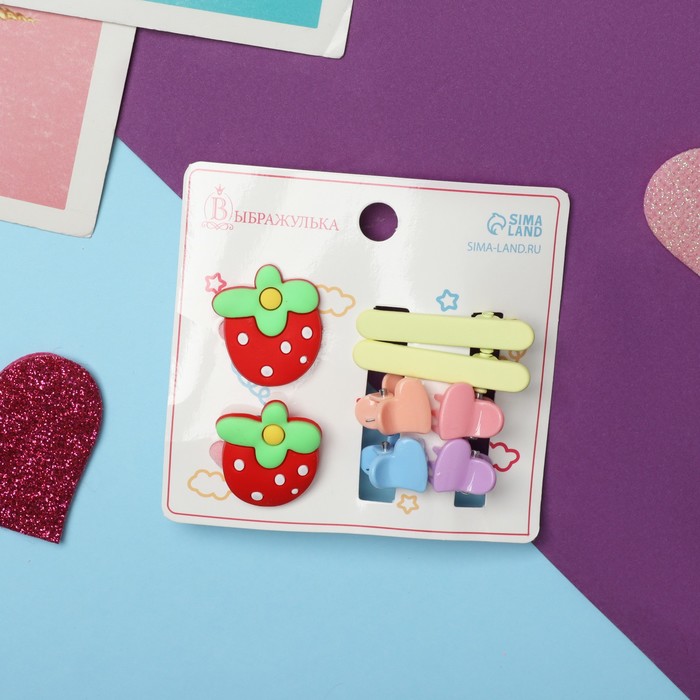 Набор для волос «Крошечка», 2 резинки, 2 зажима, 4 крабика, ягодка
