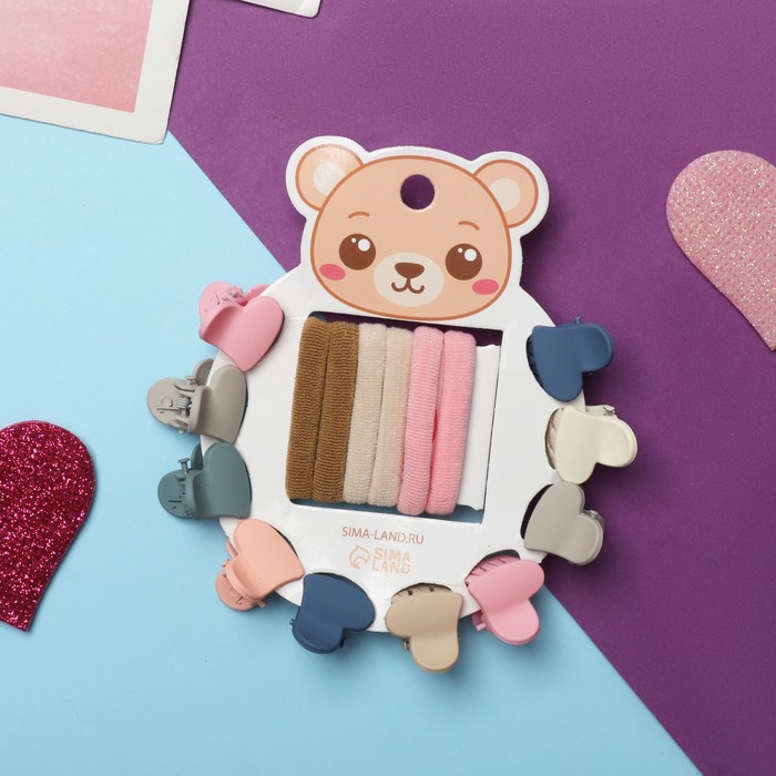 Набор для волос «Солнышко», 16 шт.: 6 резинок, 10 крабиков, сердца