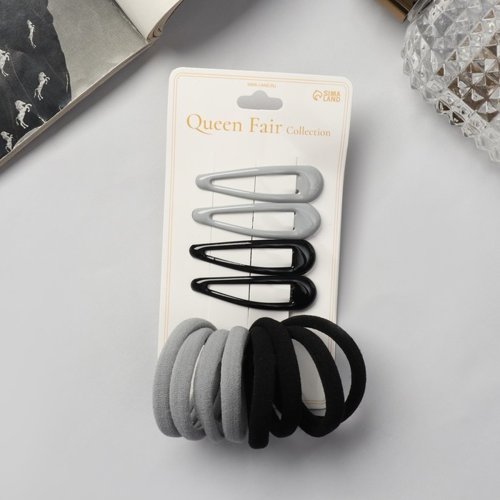 Набор для волос «Мира», 12 шт.: 4 невидимки 5 см, 8 резинок 3.5 см, серо-чёрный