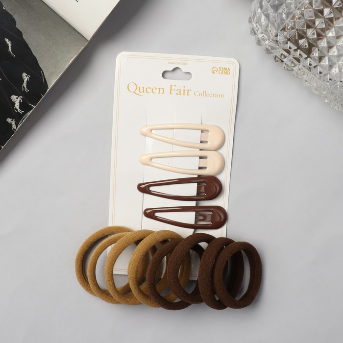 Набор для волос «Мира», 12 шт.: 4 невидимки 5 см, 8 резинок 3.5 см, кофейный