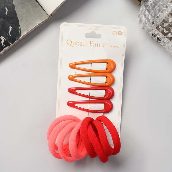 Набор для волос «Мира», 12 шт.: 4 невидимки 5 см, 8 резинок 3.5 см, красный