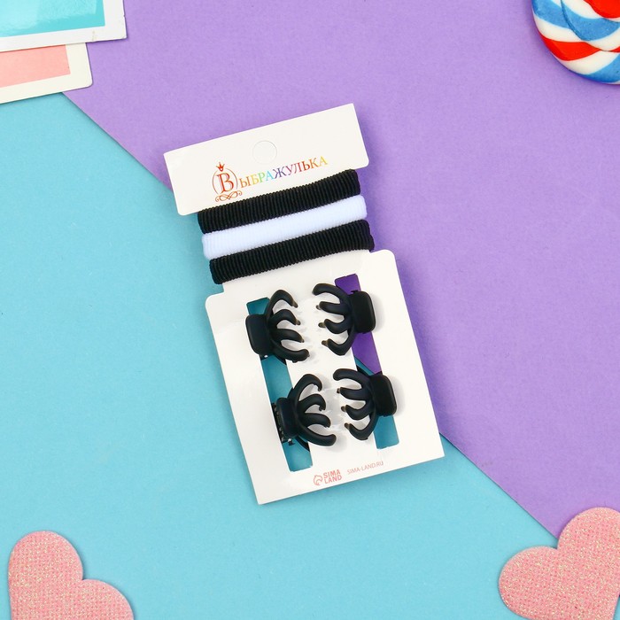 Набор для волос «Галея», 3 резинки 5 см, 4 крабика 2 см, зубчики, чёрно-белый