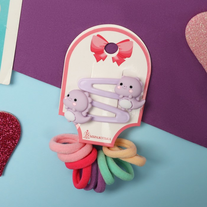 Набор для волос «Карамель», 10 резинок 1.5 см, 2 невидимки 3.5 см, дракончики, сиреневый