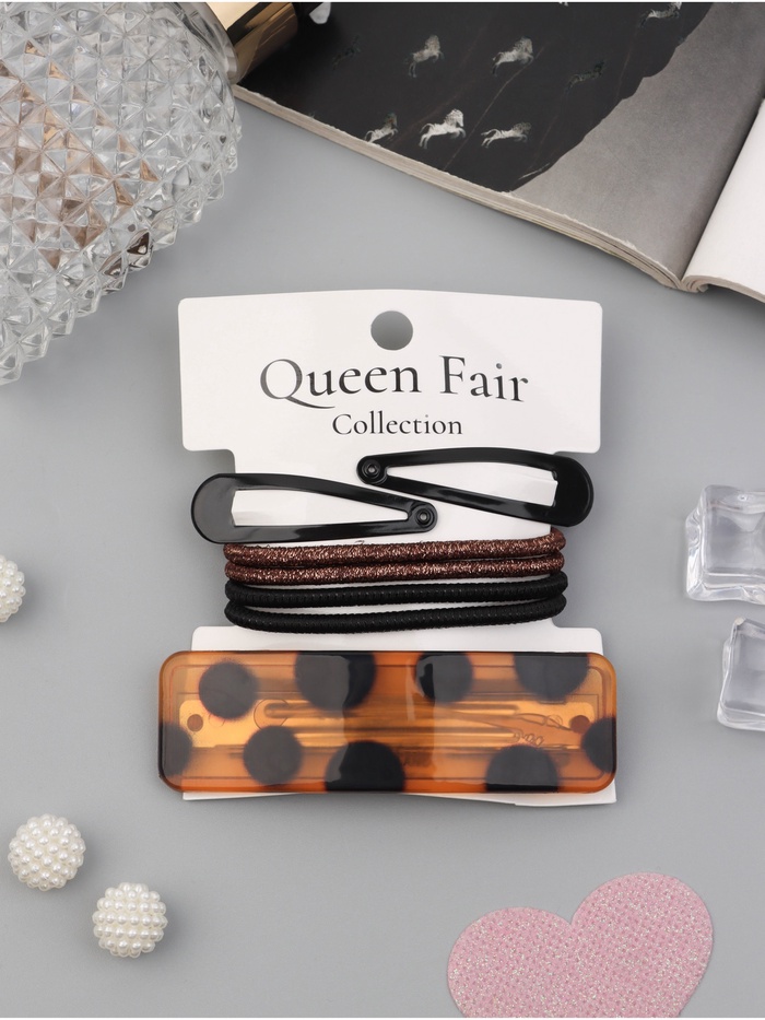Набор для волос QF «Флоренс лео», 4 резинки 6.5 см, автомат 9 см, 2 невидимки 4.5 см, чёрный, коричневый