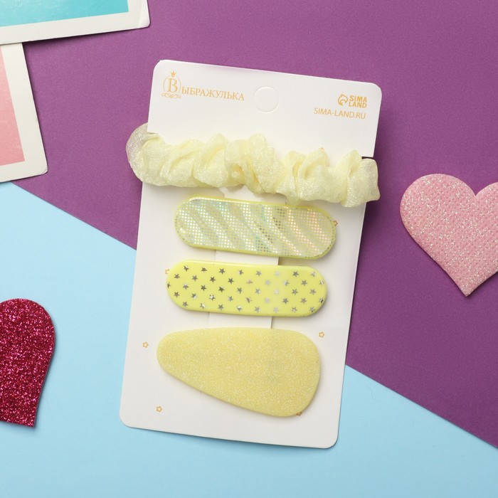 Набор для волос «Толиман», 4 шт.: 1 резинка 6 см, 3 невидимки 5 см, жёлтый