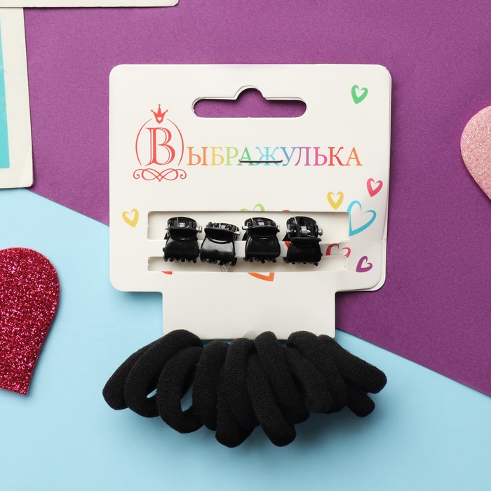 Набор для волос «Затейница», 12 резинок 2 см, 4 крабика, классика, чёрный
