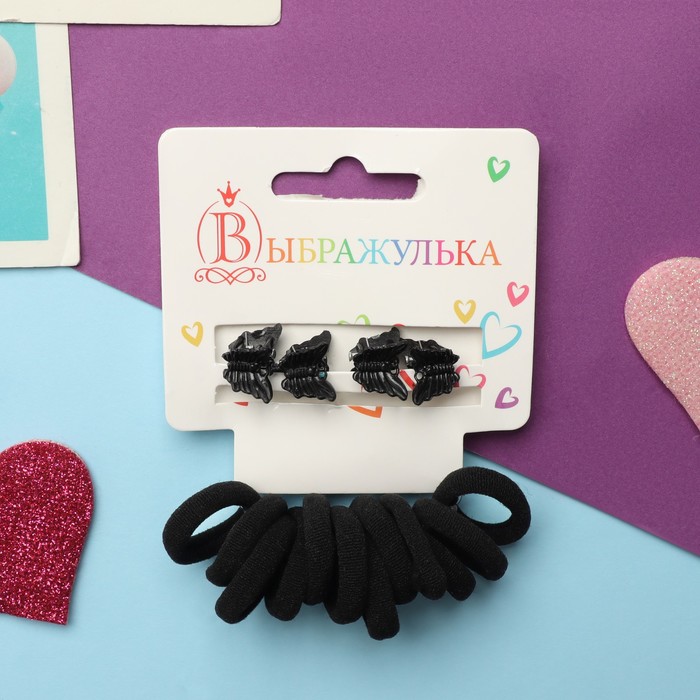 Набор для волос «Затейница», 12 резинок 2 см, 4 крабика, бабочки, чёрный