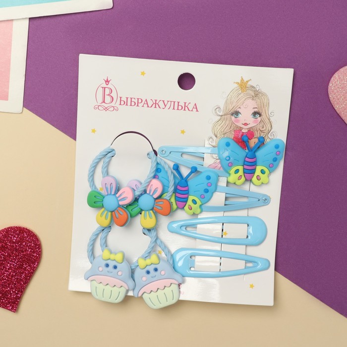 Набор для волос «Ванилька», 4 резинки, 4 невидимки, бабочки, голубой