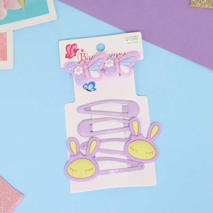 Набор для волос «Ширли», 2 резинки 5 см, 4 невидимки 5.5 см, бабочка, сиреневый