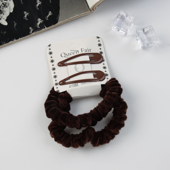 Набор для волос «Глория нежность», 2 резинки 5.5 см, 2 невидимки 5 см, коричневый