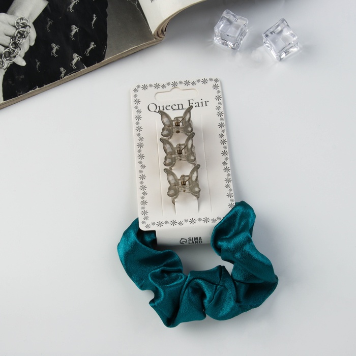 Набор для волос «Джеси», резинка 7 см, 3 крабика 2 см, зелёный