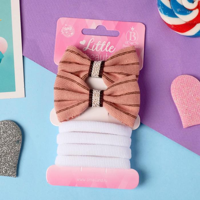 Набор для волос "Аннет" (4 резинки, 2 зажима) двойная полоса, 5,5х3,5 см, бело-коричневый