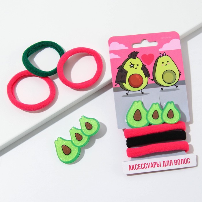 Резинки и заколка для волос «Авокадная парочка», набор