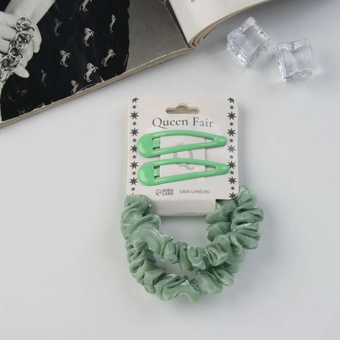 Набор для волос «Глория блеск», 2 резинки 5.5 см, 2 невидимки 5 см, зелёный
