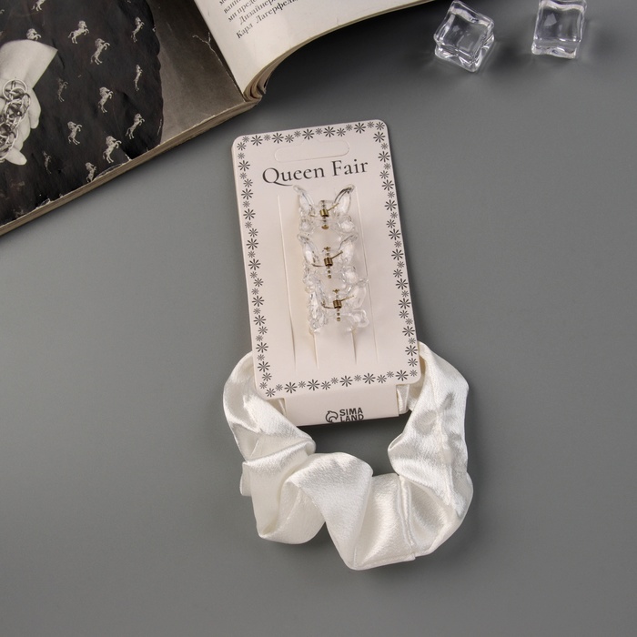 Набор для волос «Джеси», резинка 7 см, 3 крабика 2 см, белый