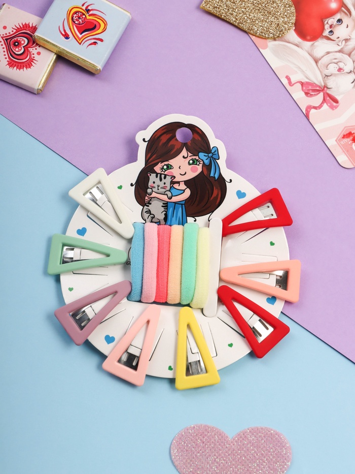 Набор для волос «Лучик», 10 резинок, 4 зажима, единорожка, МИКС