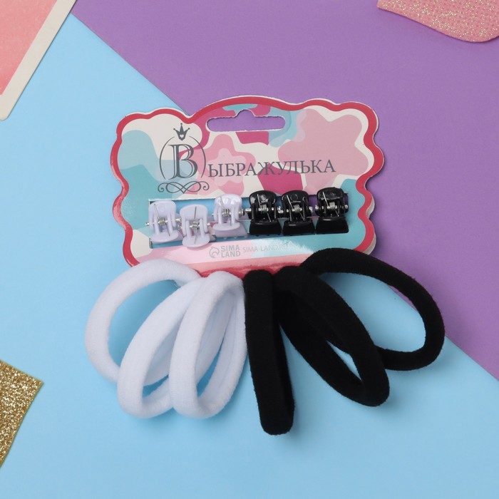 Набор для волос «Спорт», 12 шт.: 6 резинок, 6 крабиков, чёрный, белый