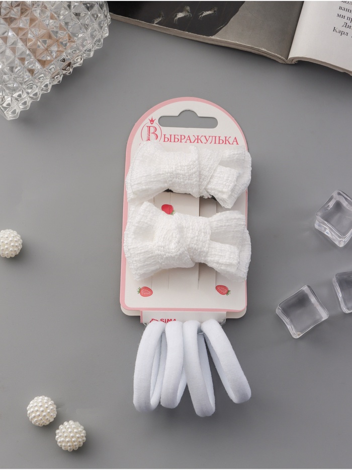 Набор для волос «Школьница галант», 4 резинки 3.5 см, 2 зажима 6 см, элит, белый