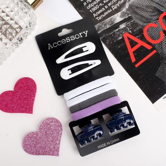 Набор для волос "Новия" (2 невидимки 5 см, 4 резинки, 2 краба 3 см) бело-серый