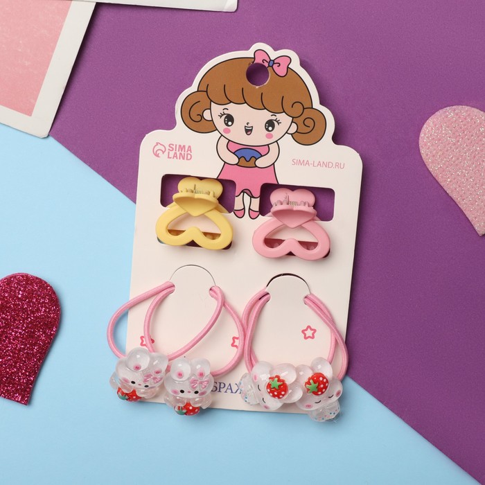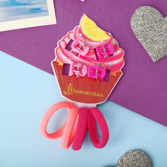 Набор для волос «Маленькая радость», 8 шт.: 4 резинки, 4 крабика, пироженка, розовый