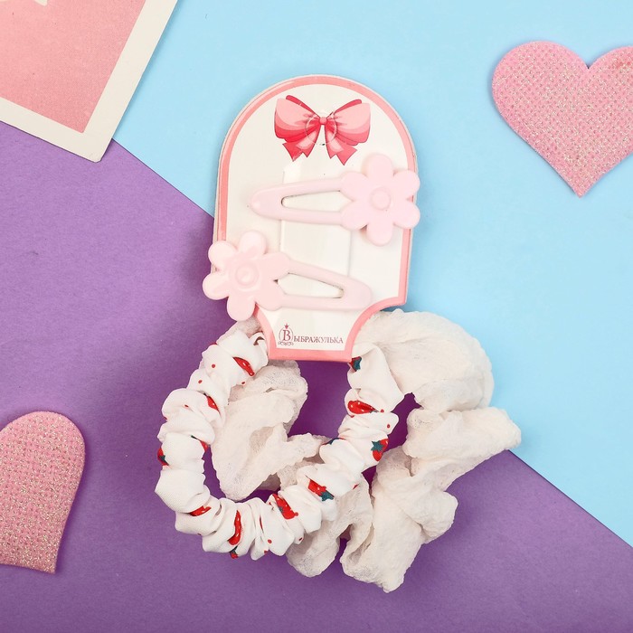 Набор для волос "Милица" 4 шт (невидимка 2 шт - 4 см, резинка 2 шт) клубнички, бело-розовый 929896