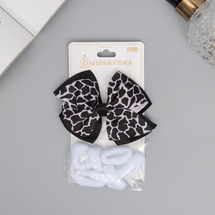 Набор для волос «Сьюзи», 7 шт.: зажим 8 см, 6 резинок 2.5 см, пятна стиль, чёрно-белый