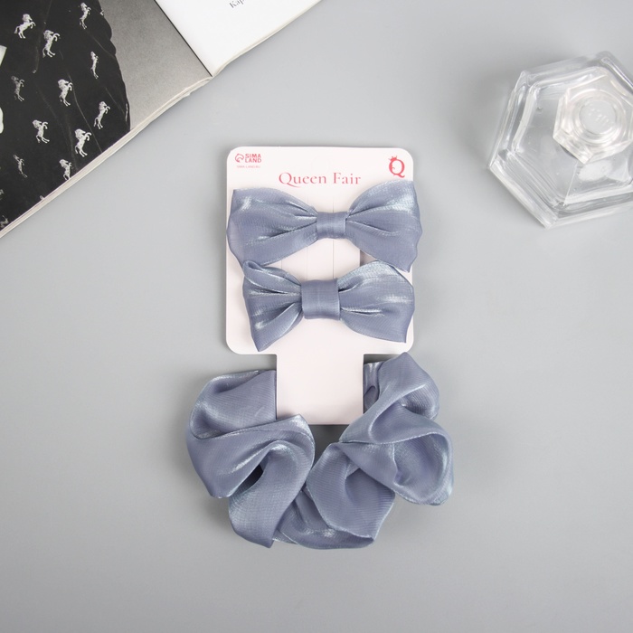 Набор для волос «Фелиция», 3 шт.: резинка 7 см, 2 зажима 6.5 см, классика, серый