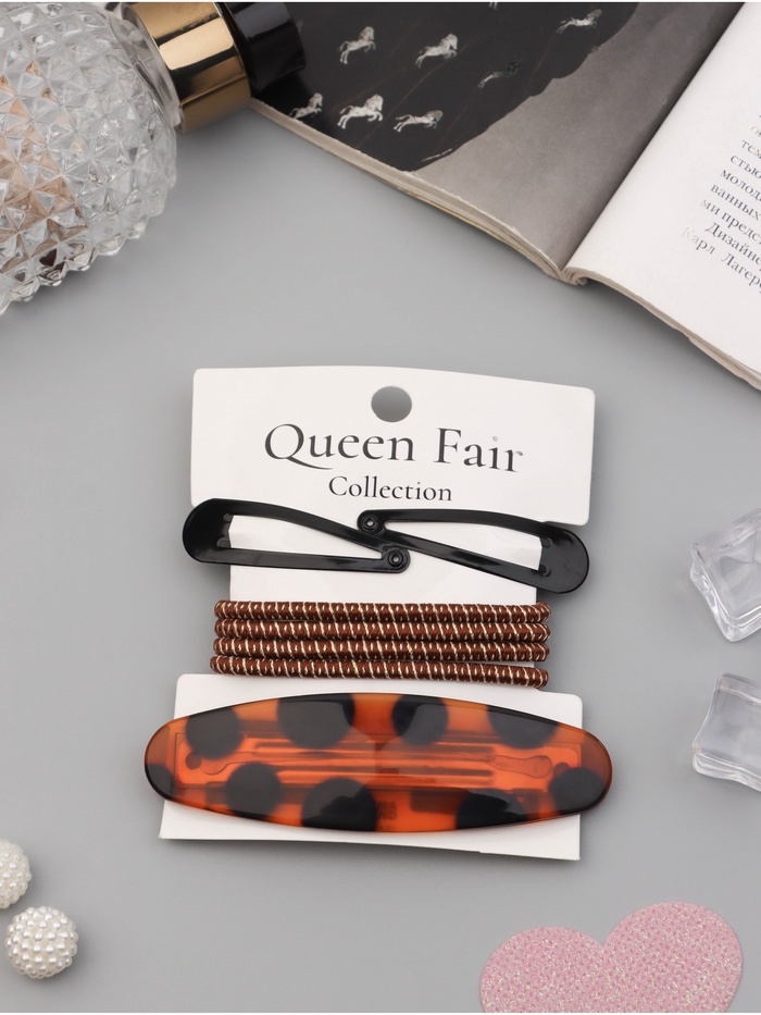 Набор для волос QF «Авиталь», 4 резинки 6.5 см, автомат 8 см, 2 невидимки 4.5 см, чёрный, коричневый